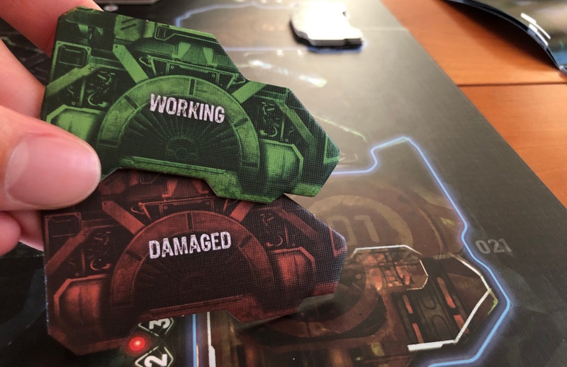 The two engine tokens that players can rearrange to set the engine as working or damaged.